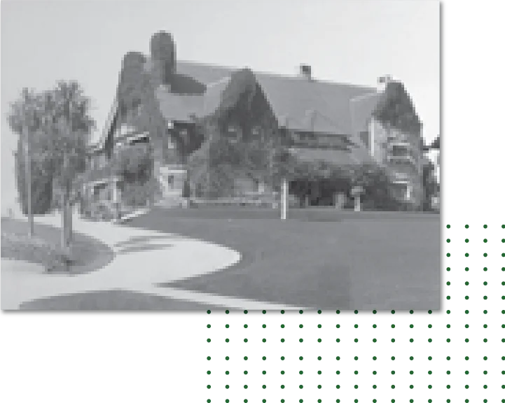 Adolphus Busch, president of the Anheuser Busch Brewing Association, and his wife, Lilly, arrived in Pasadena in March of 1904. They arrived on the eighty-foot long, Palace Pullman car, Adolphus, and took 10 rooms at the elegant Hotel Raymond south of town. In a few weeks it was announced that Mr. Busch had acquired a property overlooking the Arroyo Seco canyon near Pasadena’s southwestern boundaries. This was a stone-faced “pile” built in 1898 designed by architect, Frederick L. Roehrig on less than 2 acres. This would be the Busch family winter home and axis for all future properties added to “Ivy Wall”. It was reported that E. H. Lockwood, purveyor of “gilt-edged realty” (and soon to become Busch’ agent in Southern California), had envisioned this particular site as the ideal garden spot and discussed the notion with Mr. Busch. It was soon requested that Mr. Lockwood get the project under way and ready the house for the Busch’s taking possession in February 1905.